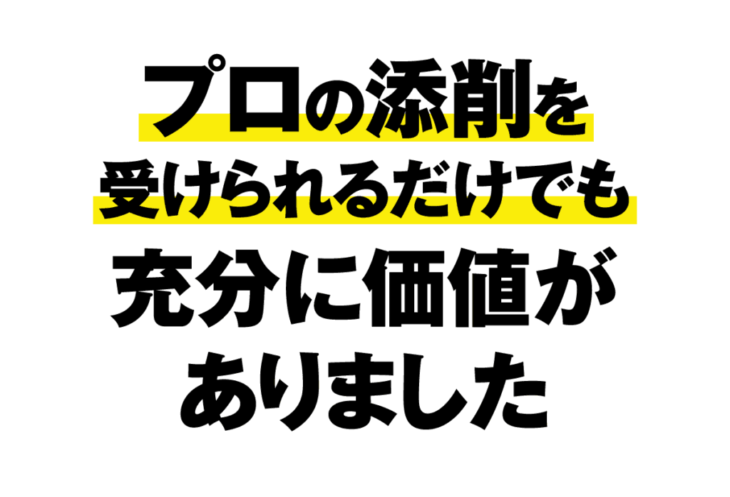 セールスに特化したデザインを教えてくれ、添削の回数も膨大だと聞いたから。
